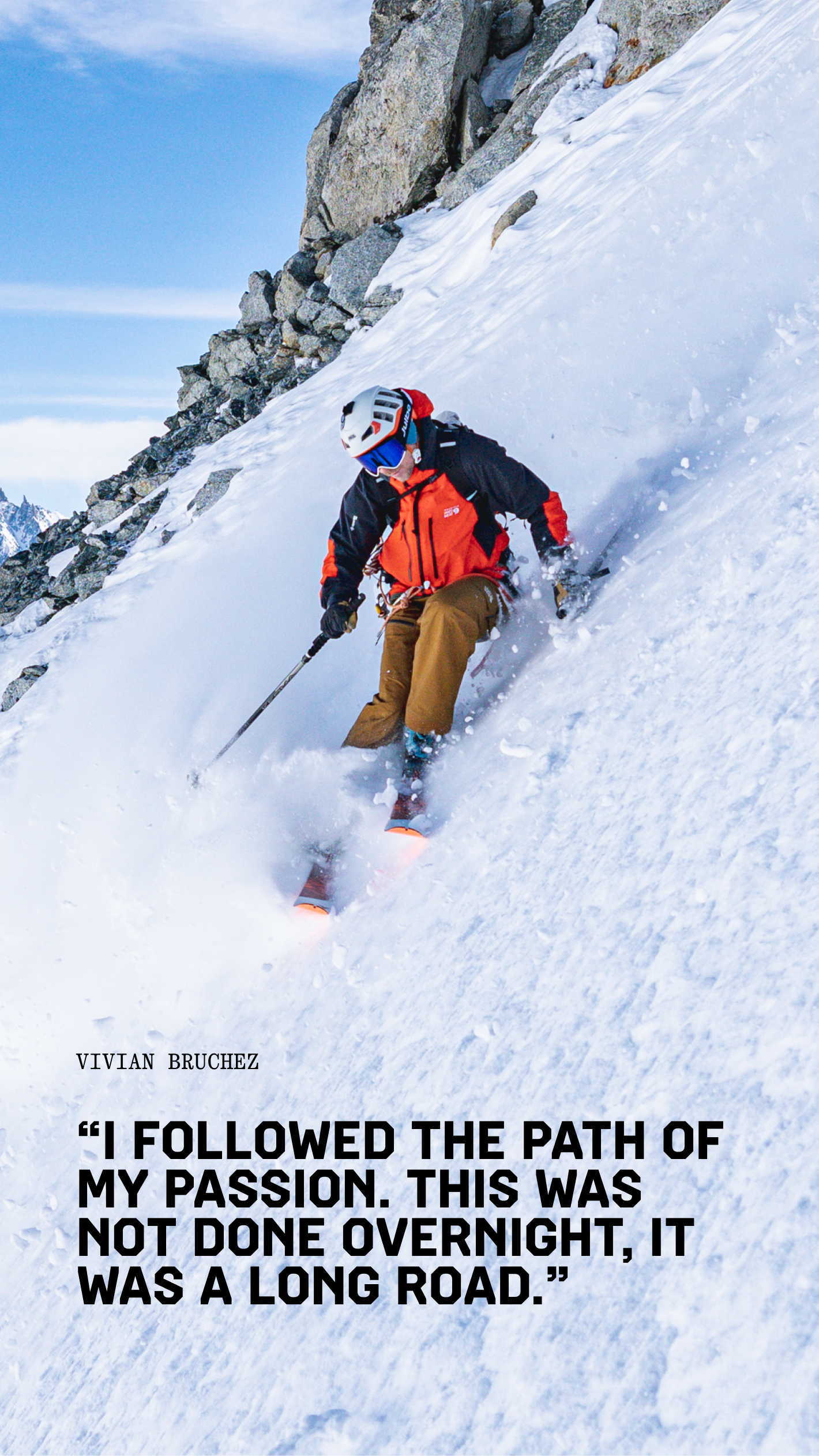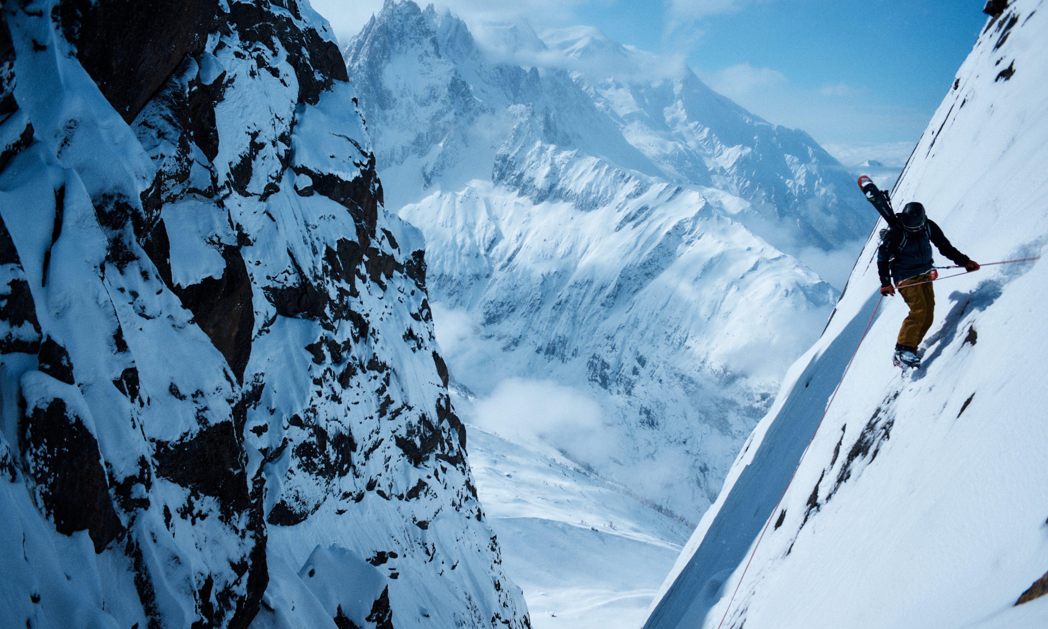 Vivian Bruchez scaling a snowy ridge wearing the Men's Mythogen™ GORE-TEX PRO Jacket.