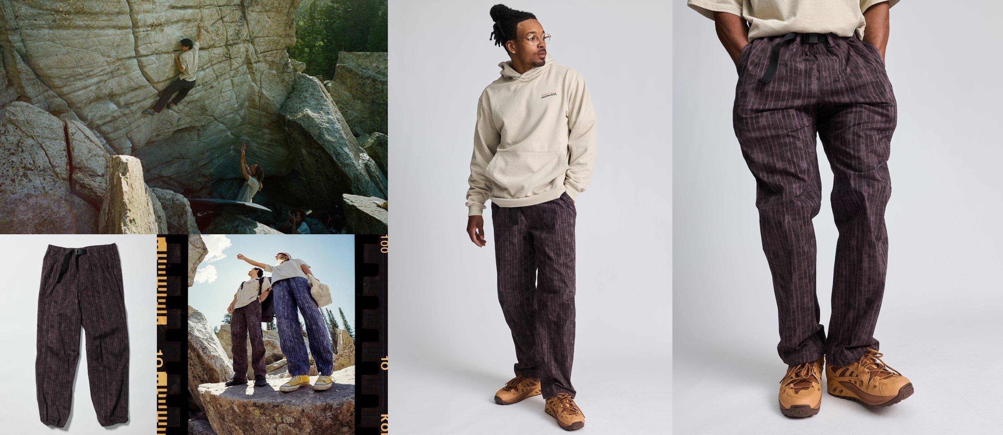Lightweight cotton climb pants with a relaxed leg shape for comfort on and off the rock.